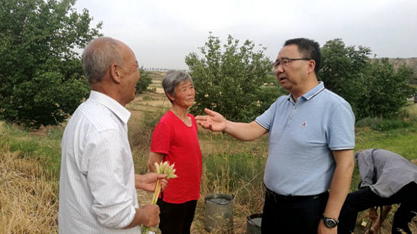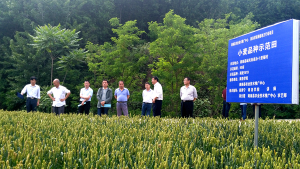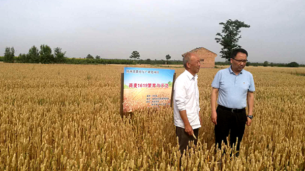 ——黨委書記龍治剛深入涇陽縣調(diào)研商麥系列小麥品種示范推廣。5月28日,校黨委書記龍治剛在黨委辦公室和秦嶺植物良種繁育中心負(fù)責(zé)人的陪同下,深入咸陽市涇陽縣橋底鎮(zhèn)、口鎮(zhèn),觀摩了商麥1619和商麥5226的生長(zhǎng)和推廣情況。在口鎮(zhèn)碾窩村,龍治剛和正在收獲小麥的農(nóng)戶進(jìn)行了親切交流。當(dāng)聽到商麥5226品種好、面白好吃,在當(dāng)?shù)厣钍軞g迎時(shí),他倍感欣慰。龍治剛指出,服務(wù)社會(huì)發(fā)展,是我??萍脊ぷ鞯闹匾獌?nèi)容。我校小麥品種能走出商洛、種上渭北旱塬,成績(jī)喜人、應(yīng)予支持推廣。學(xué)校和種子企業(yè)技術(shù)人員要加強(qiáng)栽培技術(shù)指導(dǎo),確保良種、良法、高產(chǎn),為陜西省糧食增產(chǎn)增收做出應(yīng)有貢獻(xiàn)。