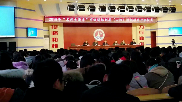 11月15日,由我校承擔的2018年“名師大篷車”市級送培到縣項目分別在柞水縣和山陽縣舉行了開班典禮,兩縣科教局相關負責人及我校繼續(xù)教育學院負責人出席開班典禮。開班典禮后,我校紀委書記王思懷教授、圖書館館長楊增強教授分別為兩縣參訓教師作了首場師德報告。柞水縣500名中小學教師、山陽縣600名中小學教師參加了本次培訓。