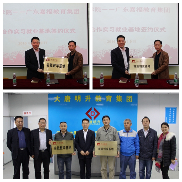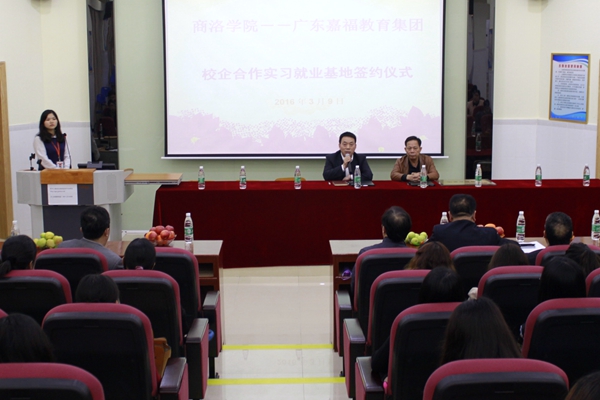 在商洛學(xué)院—廣州嘉福教育集團(tuán)、深圳大唐明升教育集團(tuán)校企合作實(shí)習(xí)就業(yè)基地簽字及授牌儀式上,廣東嘉褔教育集團(tuán)董事長(zhǎng)張利輝,深圳大唐明升教育集團(tuán)總經(jīng)理唐后元及各實(shí)習(xí)就業(yè)學(xué)校領(lǐng)導(dǎo)對(duì)彭虎軍一行表示熱烈歡迎,彭虎軍首先代表學(xué)校對(duì)嘉福教育集團(tuán)及深圳大唐明升教育集團(tuán)對(duì)我校實(shí)習(xí)就業(yè)工作的大力支持表示衷心感謝,對(duì)實(shí)習(xí)就業(yè)單位給予我校實(shí)習(xí)就業(yè)學(xué)生的培養(yǎng)指導(dǎo)和服務(wù)給予肯定,并向與會(huì)師生詳細(xì)介紹了我校的歷史、發(fā)展歷程、辦學(xué)目標(biāo)、辦學(xué)理念、學(xué)科專業(yè)建設(shè)、實(shí)習(xí)就業(yè)及近年來(lái)我校辦學(xué)所取得的成績(jī)。他指出,校企合作人才培養(yǎng)是我校升本以來(lái)探索應(yīng)用性人才培養(yǎng)的主要途徑,是助推我校向應(yīng)用型本科院校轉(zhuǎn)型的條件保障,學(xué)校高度重視與各企業(yè)單位的深度融合,將結(jié)合各實(shí)習(xí)學(xué)校領(lǐng)導(dǎo)和教師的意見,不斷優(yōu)化人才培養(yǎng)方案,加大實(shí)踐教學(xué)力度,加強(qiáng)實(shí)習(xí)就業(yè)基地建設(shè),逐步構(gòu)建產(chǎn)教融合、校企合作和協(xié)同育人新模式。同時(shí),我校也成為廣東嘉褔教育集團(tuán)及深圳大唐明升教育集團(tuán)人才培養(yǎng)基地。