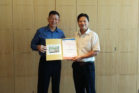 南洋理工大學(xué)副校長李盛光教授向劉勇頒發(fā)結(jié)業(yè)證書