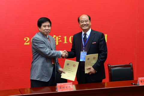 10月23日,在商洛學(xué)院創(chuàng)建一流應(yīng)用型本科院校動(dòng)員大會(huì)上,西北大學(xué)黨委副書(shū)記、副校長(zhǎng)賈明德與我校黨委書(shū)記、校長(zhǎng)劉建林代表雙方簽訂《西北大學(xué)對(duì)口支援商洛學(xué)院協(xié)議書(shū)》。