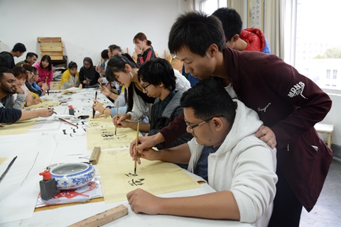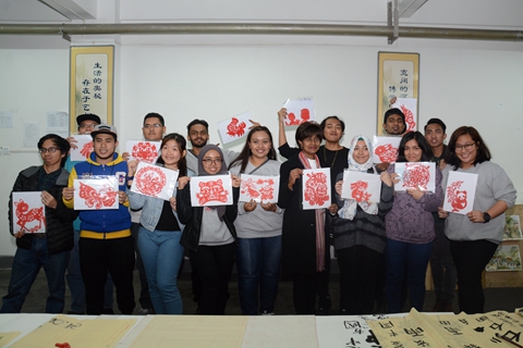 馬來西亞吉隆坡建設(shè)大學(xué)師生還參加了我??萍嘉幕囆g(shù)節(jié)開幕式,共同觀看航模表演,并聽取了我校創(chuàng)建一流應(yīng)用型本科院校系列學(xué)術(shù)報告。交流團學(xué)生還在我校教師的指導(dǎo)下學(xué)習(xí)剪紙和中國書法,表現(xiàn)出了濃厚的興趣,并通過學(xué)習(xí),完成了自己的作品,寫出了“我愛中國”、“我愛商洛學(xué)院”等書法作品。