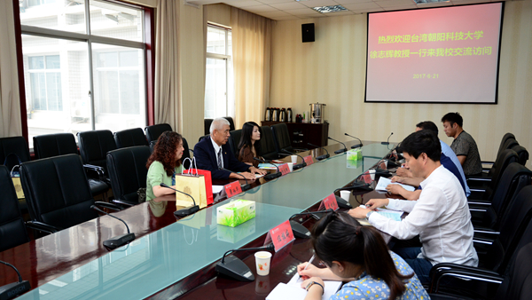 范新會首先就我校辦學定位、專業(yè)設置、師資隊伍及學生出國(境)等基本情況作了介紹。他指出,兩岸同胞同根同源、同文同宗,在經(jīng)濟全球化深入發(fā)展的今天,兩岸聯(lián)系日益密切。作為兩岸高等學府,雙方要加強文化交流,共同傳承中華文化優(yōu)秀傳統(tǒng),建設共同精神家園。他表示,我校今后將進一步創(chuàng)造條件,推動師生互訪交流,深入推進與朝陽科技大學的合作,實現(xiàn)兩校互利雙贏。