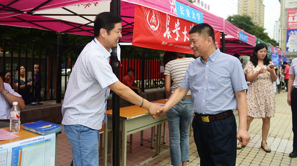 6月26日,我校舉辦了2019年校園開放日暨陜西高校招生咨詢會。我校與浙江大學(xué)、西安交通大學(xué)、西北工業(yè)大學(xué)、西北農(nóng)林科技大學(xué)、西北大學(xué)、長安大學(xué)、西安郵電大學(xué)、西交利物浦大學(xué)等30余所省內(nèi)外高校現(xiàn)場為廣大高考考生及家長提供招考咨詢服務(wù)。校長范新會到現(xiàn)場看望慰問各校工作人員并與考生及家長進(jìn)行了親切交談。