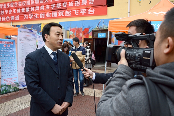 彭虎軍在招聘會期間接受了電視臺專訪。他指出,我校一貫重視大學生就業(yè)工作,通過落實完善就業(yè)創(chuàng)業(yè)政策,加大資金投入,積極促進大學生自主創(chuàng)業(yè)。不斷加強大學生就業(yè)服務和指導,以舉辦就業(yè)形勢與政策報告會、邀請就業(yè)創(chuàng)業(yè)專家進校園等方式宣傳大學生就業(yè)政策,促進大學生就業(yè)觀念的轉變。通過舉辦各類招聘會促進大學生就業(yè),近期連續(xù)舉辦了4場招聘會,提供就業(yè)崗位6000多個。他表示,有黨和政府促進大學生就業(yè)的良好政策,有社會各界的大力支持,有廣大學生的積極努力,我校畢業(yè)生一定能夠實現(xiàn)更充分更高質量的就業(yè)創(chuàng)業(yè)。