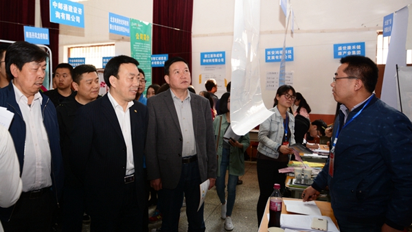 招聘會(huì)期間,校黨委副書記彭虎軍帶領(lǐng)相關(guān)部門負(fù)責(zé)人深入招聘會(huì)現(xiàn)場(chǎng),了解用人單位的招聘需求和畢業(yè)生的求職意向,并與商洛市人社局領(lǐng)導(dǎo)就校地聯(lián)合共同做好畢業(yè)生就業(yè)創(chuàng)業(yè)工作進(jìn)行了交流。
