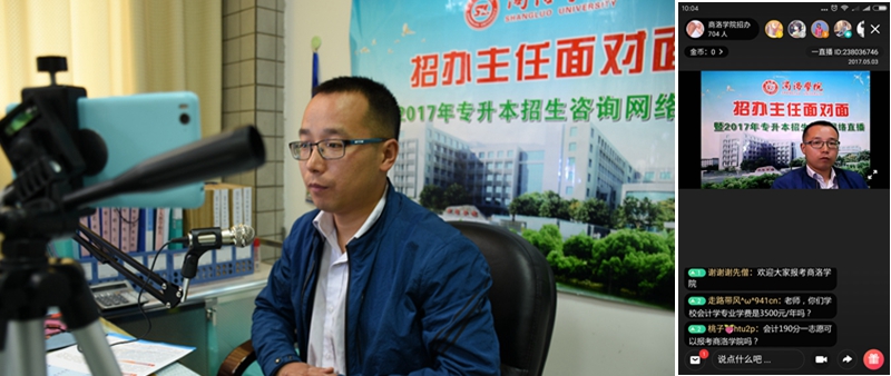 今年專升本志愿填報(bào)期間,我校創(chuàng)新性開辟了網(wǎng)絡(luò)直播平臺(tái),借助“互聯(lián)網(wǎng)+”手段開展招生宣傳,取得了良好效果。這項(xiàng)工作在陜西省高校中尚屬首創(chuàng)。