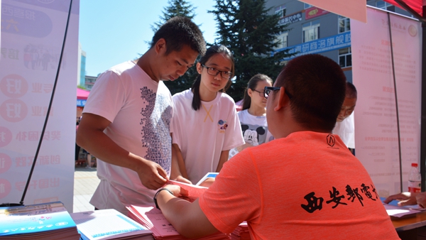6月26日,我校舉辦2017年“校園開放日暨招生咨詢會”。我校與西安交通大學(xué)、西北工業(yè)大學(xué)、陜西師范大學(xué)、西安理工大學(xué)、西安郵電大學(xué)、陜西理工大學(xué)、安康學(xué)院等32所省內(nèi)兄弟院?,F(xiàn)場為廣大高考考生及家長提供了全方位的招考咨詢服務(wù)?;顒游舜笈鷮W(xué)生及家長前來咨詢。
