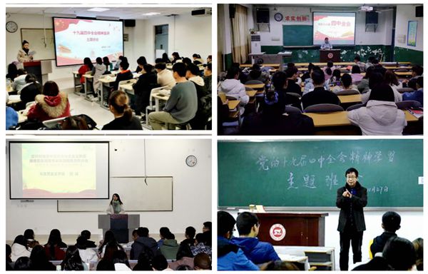 按照學(xué)校黨委的部署和學(xué)工部的統(tǒng)一安排,11月27日晚,我校全體輔導(dǎo)員深入班級(jí),通過舉辦主題班會(huì)等形式,向?qū)W生宣講黨的十九屆四中全會(huì)精神,對(duì)學(xué)生開展制度自信教育。