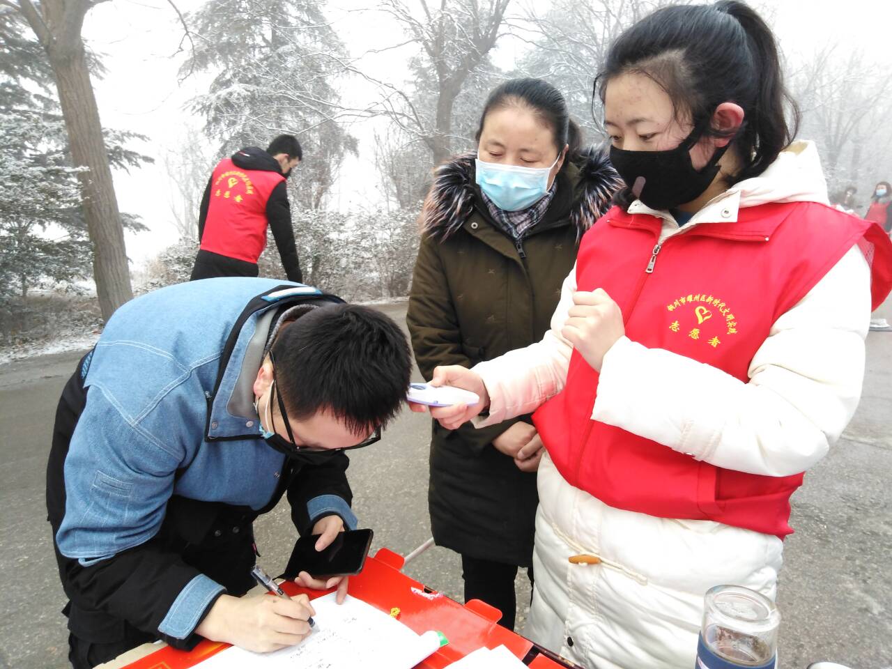 護理學專業(yè)2018級學生焦思娟看到無數(shù)醫(yī)護人員不顧自身安危搶救病患,看到村里的干部們不畏嚴寒24小時堅守在檢查崗位,深受感動的她毅然加入家鄉(xiāng)的志愿者隊伍,在銅川市耀州區(qū)孫塬鎮(zhèn)村口疫情防控檢查站勸返外省車輛、測量進村人員體溫,在村子里發(fā)放宣傳資料,幫助村委會工作人員整理外省返鄉(xiāng)人員檔案。她說自己做的事情雖然微不足道,但是感覺很充實,能為社會獻出自己的綿薄之力,是每個公民應盡的社會責任。