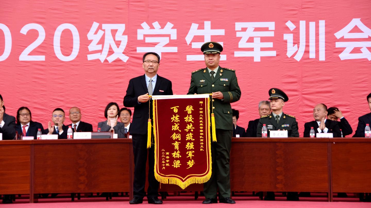 大會在莊嚴(yán)的升旗儀式中拉開帷幕。校黨委書記龍治剛對全體承訓(xùn)教官盡心竭力、風(fēng)雨無阻的付出表示由衷感謝,代表學(xué)校向承訓(xùn)部隊(duì)贈送了寫有“警校共筑強(qiáng)軍夢,百煉成鋼育棟梁”的錦旗。