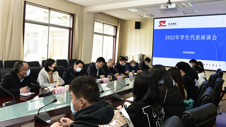 3月3日下午,我校召開(kāi)學(xué)生代表座談會(huì)。黨委副書(shū)記彭虎軍、副校長(zhǎng)郭瑾與20名學(xué)生代表進(jìn)行面對(duì)面座談,聽(tīng)取廣大在校學(xué)生對(duì)學(xué)校工作的意見(jiàn)建議。學(xué)工部、保衛(wèi)部、團(tuán)委、教務(wù)處、后勤保障處、圖書(shū)館等部門負(fù)責(zé)人參加座談。