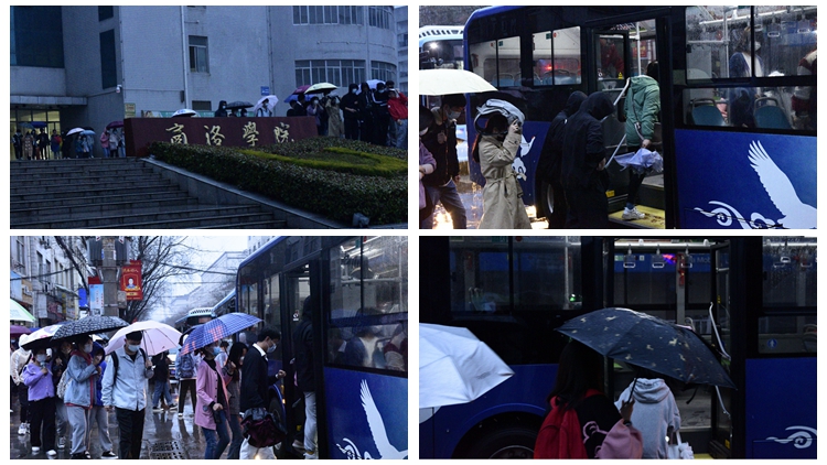 3月12日上午6:20分,學(xué)校調(diào)集的16輛公交車輛準(zhǔn)時到達(dá)北新街校區(qū)和丹江校區(qū)大門前。相關(guān)輔導(dǎo)員與帶隊教師逐一查驗考生行程碼、健康碼,提醒學(xué)生帶好健康檢測報告及身份證、準(zhǔn)考證,專人帶隊跟車,將考生運送至商洛職業(yè)技術(shù)學(xué)院與商洛市初級中學(xué)兩個考點。學(xué)生在考試后通過“綠色通道”用餐,所有科目考試完畢后再乘車返校。通過分考點、分時段、分類別、分批次“點對點”的轉(zhuǎn)運方式,全天累計出動87車(次),確保全體考生圓滿完成考試工作。