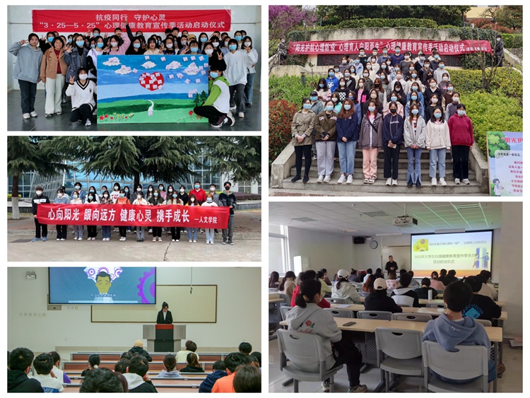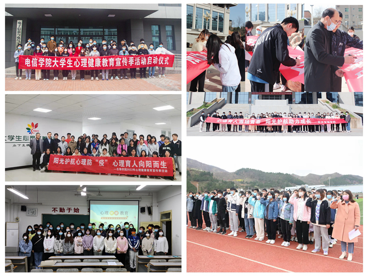 各二級學(xué)院結(jié)合院部實際,把握主題,精心策劃并陸續(xù)舉行了各自院部的心理健康教育宣傳季啟動儀式。其中,馬克思主義學(xué)院組織了40名學(xué)生代表在操場開展了以“抗疫同行守護心靈”為主題的團體輔導(dǎo)活動,引導(dǎo)學(xué)生在體驗活動中發(fā)現(xiàn)自己的閃光點、以更加積極健康的心態(tài)迎接未來的挑戰(zhàn);人文學(xué)院開展“3·25大學(xué)生心理健康日”交流會,現(xiàn)場準備了粉色問題箱、綠色回答箱、藍色宣泄箱、黃色祝福箱,讓同學(xué)們對自己和身邊人坦誠,增進自我了解,釋放心情,驅(qū)散煩惱;數(shù)計學(xué)院組織學(xué)生觀看心理育人微視頻,并圍繞“如何應(yīng)對壓力”的話題讓學(xué)生展開討論,旨在讓學(xué)生尋找到適合自己應(yīng)對壓力的方式,及時為自己解壓,保持良好的心理狀態(tài)。建工學(xué)院組織學(xué)生觀看了“面對疫情,我們?nèi)绾芜M行心理調(diào)適?”的心理健康講座視頻,讓學(xué)生覺察自己因疫情帶來的不良情緒及其調(diào)適方法;經(jīng)管學(xué)院開展了“愛心理助力團”心理委員專題培訓(xùn),了解學(xué)生在校園加強疫情管控期間的心理狀況,引導(dǎo)學(xué)生多關(guān)注心理健康方面知識,保持積極健康心態(tài);藝術(shù)學(xué)院召集全院學(xué)生干部,并由黨總支書記黃新春為學(xué)生干部們講述心理危機的識別與干預(yù)的基本要領(lǐng),進一步夯實了學(xué)院危機干預(yù)四級網(wǎng)絡(luò)機制;電信學(xué)院、化材學(xué)院、生物學(xué)院和健康學(xué)院等開展了以“陽光護航”為主題的啟動大會,會上安排部署心理季活動,介紹了心理健康教育的意義及重要性,組織學(xué)生進行“325善愛我”的宣誓并在橫幅上簽字,旨在號召關(guān)注心理健康,不負青春韶華。