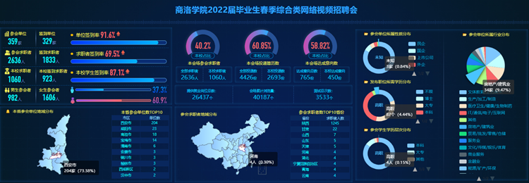 4月12日,我校2022屆畢業(yè)生春季綜合類網絡視頻招聘會順利舉辦,省內外350余家單位報名參會,提供涉及IT通信、教育科技、醫(yī)療衛(wèi)生、建筑工程、信息服務、機電制造等9大行業(yè)領域的就業(yè)崗位2萬余個。共吸引了2636余名校內外畢業(yè)生參會,畢業(yè)生累計投遞簡歷4426余份。其中,我校入場求職學生1060人,初步達成就業(yè)意向450人次。
