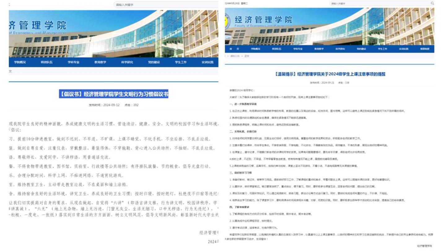 文明行為習慣養(yǎng)成教育是學校堅持從學生教育管理的“基本功”做起,從學生學習生活的“最前沿”做起,從學生成長成才的細節(jié)處抓起,既是學生工作的有力舉措,是人才培養(yǎng)工作的生動體現,也是落實立德樹人根本任務的應有之義。下一步,學校將不斷深化大學生文明行為養(yǎng)成教育內涵、創(chuàng)新工作方式,堅持階段性任務與長效性工作相結合,將大學生文明行為養(yǎng)成教育與優(yōu)良學風建設相結合,引導學生樹立“以學促思、以思促行、以行促學”,著力營造文明和諧的校園氛圍,以實際行動助推學生工作高質量發(fā)展。