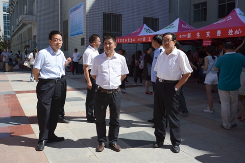 我校2016級(jí)新生將于9月3日、4日入學(xué)報(bào)到。9月2日下午,校黨委副書(shū)記、副校長(zhǎng)范新會(huì),副校長(zhǎng)魏書(shū)堂,黨委副書(shū)記彭虎軍深入迎新接待點(diǎn),檢查指導(dǎo)迎新工作。