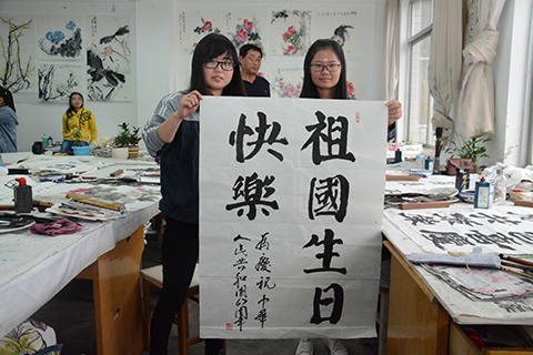 學(xué)生胡甜甜說道,書法是中國(guó)傳統(tǒng)文化的瑰寶,在祖國(guó)67華誕即將到來之際,用書法作品表達(dá)對(duì)祖國(guó)的愛,覺得很有意義,也深受教育。學(xué)生許佳妮說,作為當(dāng)代大學(xué)生,我們要認(rèn)真學(xué)習(xí),練就報(bào)效祖國(guó)的本領(lǐng),為實(shí)現(xiàn)中國(guó)夢(mèng)做出自己的貢獻(xiàn)!祝祖國(guó)繁榮昌盛,美麗富強(qiáng)!