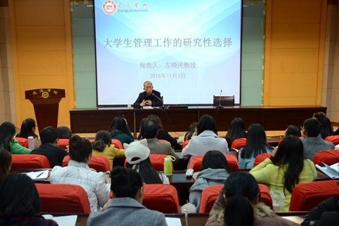 為進一步提高我校輔導員職業(yè)能力,提升輔導員專業(yè)化、職業(yè)化水平,11月3日,學工部召開了輔導員專題培訓會,邀請我校教學督導組組長左曉民教授為輔導員們做了題為《大學生管理工作的研究性選擇》的專題報告。我校全體輔導員和商洛職業(yè)技術(shù)學院輔導員聽取了報告。報告會由學工部部長石啟英主持。