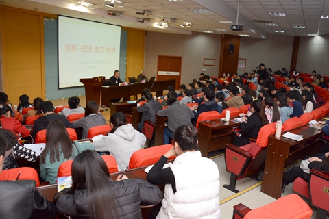 為深入學(xué)習(xí)和理解黨的十八屆六中全會精神,11月14日,左曉民教授應(yīng)邀來到“青年大講堂”,以《旗幟·規(guī)矩·生態(tài)·優(yōu)勢》為題,為我校青年學(xué)生作了十八屆六中全會精神學(xué)習(xí)報告。紀委書記王思懷出席報告會。校團委、各二級學(xué)院黨總支、各團總支負責(zé)人參加報告會。“青馬工程”全體學(xué)員、學(xué)生會主要干部聽取了報告。報告會由團委書記蔣正治主持。