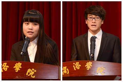 生物學(xué)院學(xué)生侯瑤、經(jīng)管學(xué)院學(xué)生趙文輝分別代表受表彰的先進(jìn)個(gè)人和受資助學(xué)生作了大會(huì)發(fā)言。