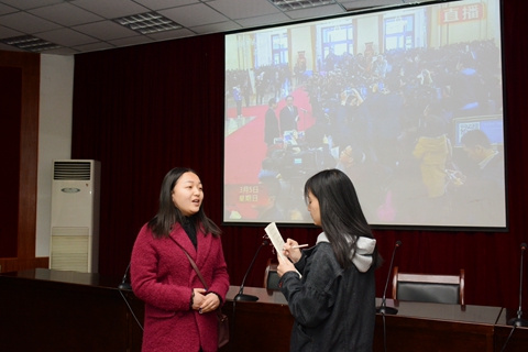 3月3日和3月5日,政協(xié)第十二屆全國委員會第五次會議、十二屆全國人大五次會議分別在北京人民大會堂開幕。我校組織師生在報告廳集中收看了開幕式實況直播,師生們分別通過手機、網(wǎng)絡(luò)、電視、廣播等媒體積極收看收聽,對兩會精神、熱點話題進行了學習討論。