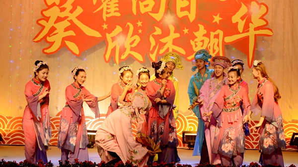 我校藝術(shù)學(xué)院教師潘勛、蘇軍、王娜娜、王怡等帶來(lái)的歌伴舞《陽(yáng)光路上》把整場(chǎng)晚會(huì)推向高潮。晚會(huì)在觀(guān)眾意猶未盡的贊美聲中完美謝幕。