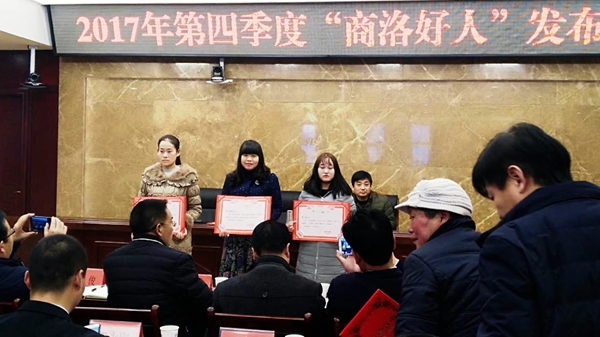 1月17日,商洛市文明委召開(kāi)2017年第四季度“商洛好人”發(fā)布會(huì),表彰第四季度16名“商洛好人”。我校兩名學(xué)生入選2017年第四季度“商洛好人”名單,生物醫(yī)藥與食品工程學(xué)院2015級(jí)學(xué)生唐偉麗入選孝老愛(ài)親類(lèi)好人,電子信息與電氣工程學(xué)院2016級(jí)學(xué)生徐傳朗入選自強(qiáng)勵(lì)志類(lèi)好人。
