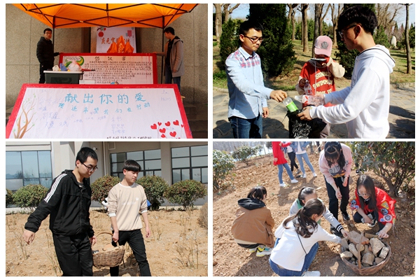 各二級學院的志愿者們也在活動期間開展了豐富多彩的志愿服務活動?;膶W院堅持25年志愿服務,每年都開展關愛孤寡老人、關心留守兒童、科技服務鄉(xiāng)村等志愿活動,今年雷鋒月活動期間,組織師生帶著慰問品和校內師生捐贈的書籍、衣物前往楊斜敬老院,慰問那里的孤寡老人;人文學院的志愿者前往百順山老年公寓開展以“春風送暖,情滿人間”為主題的志愿服務活動,陪老人聊天,詢問他們的生活狀況,為他們送去關懷與溫暖;數(shù)計學院的志愿者開展“青春見行動,人人學雷鋒”志愿服務活動,在校園學雷鋒活動站和電腦義務維護維修點宣傳雷鋒同志的光輝事跡,并幫助師生維修手機、電腦等電子設備,呼吁我校師生從身邊小事做起,用實際行動傳承弘揚雷鋒精神;生物學院的志愿者們赴商州區(qū)板橋鎮(zhèn)敬老院開展“情暖夕陽,濃情元宵”學雷鋒志愿服務活動,志愿者為老人包餃子,陪同他們歡度佳節(jié),以力所能及的實際行動弘揚中華民族尊老愛幼、助人為樂的傳統(tǒng)美德;建工學院的志愿者開展“愛在東關,益起捐”愛心募捐活動,將募集的兒童讀本、雜志、小說、體育器材等多種愛心物資親手分發(fā)給東關小學的孩子們,給他們帶去溫暖和希望。經管學院的志愿者前往金鳳山進行衛(wèi)生清掃,他們仔細清掃石子路、灌木叢等處,讓金鳳山煥然一新,將雷鋒精神深植于心中,踐行于身邊;電信學院、馬克思主義學院的志愿者在綜合教學樓前新建的綠化區(qū)開展義務勞動,他們清理硬石雜物,美化校園環(huán)境的同時,落實“學習雷鋒,奉獻他人,提升自己”的志愿服務理念。