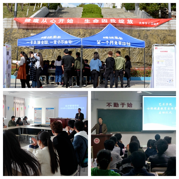 各二級(jí)學(xué)院也積極響應(yīng),陸續(xù)舉行了心理健康教育系列活動(dòng)啟動(dòng)儀式。其中,數(shù)計(jì)學(xué)院開(kāi)展了以“放飛心理之翼,塑造理想自我”為主題的現(xiàn)場(chǎng)簽名活動(dòng);經(jīng)管學(xué)院開(kāi)設(shè)了“愛(ài)心理”讀書(shū)會(huì),安排了“愛(ài)心理”助力成長(zhǎng)團(tuán),展播了《知心》系列微電影;藝術(shù)學(xué)院開(kāi)展了情景劇表演以及動(dòng)漫展等相關(guān)活動(dòng)。此外,各學(xué)院和社團(tuán)還積極籌劃了團(tuán)體心理輔導(dǎo)、心理電影展播、心理美文朗誦大賽等心理健康教育活動(dòng)。