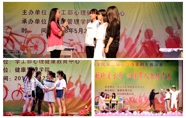 5月23日晚,以“陽(yáng)光護(hù)航助力成長(zhǎng),心理育人善待生命”為主題的我校第二屆校園心理情景劇大賽在大學(xué)生活動(dòng)中心舉行。本次大賽由學(xué)生處與健康管理學(xué)院聯(lián)合舉辦。各二級(jí)學(xué)院黨總支書(shū)記、全體輔導(dǎo)員、學(xué)生代表共500余人觀看了比賽。