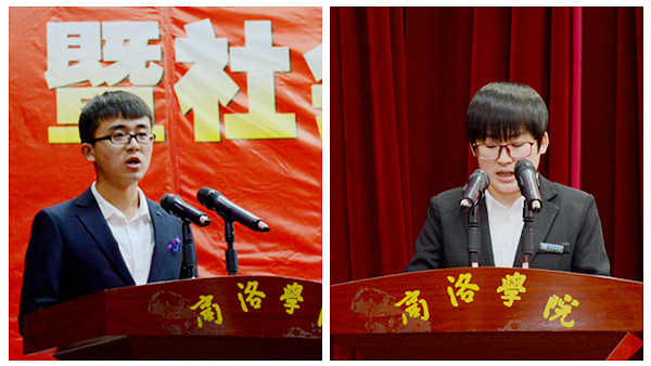 國家獎(jiǎng)學(xué)金獲得者漢語1604班田一漢、“十佳大學(xué)生”生科1501班趙盟分別代表受表彰的先進(jìn)個(gè)人和受資助學(xué)生作了發(fā)言。
