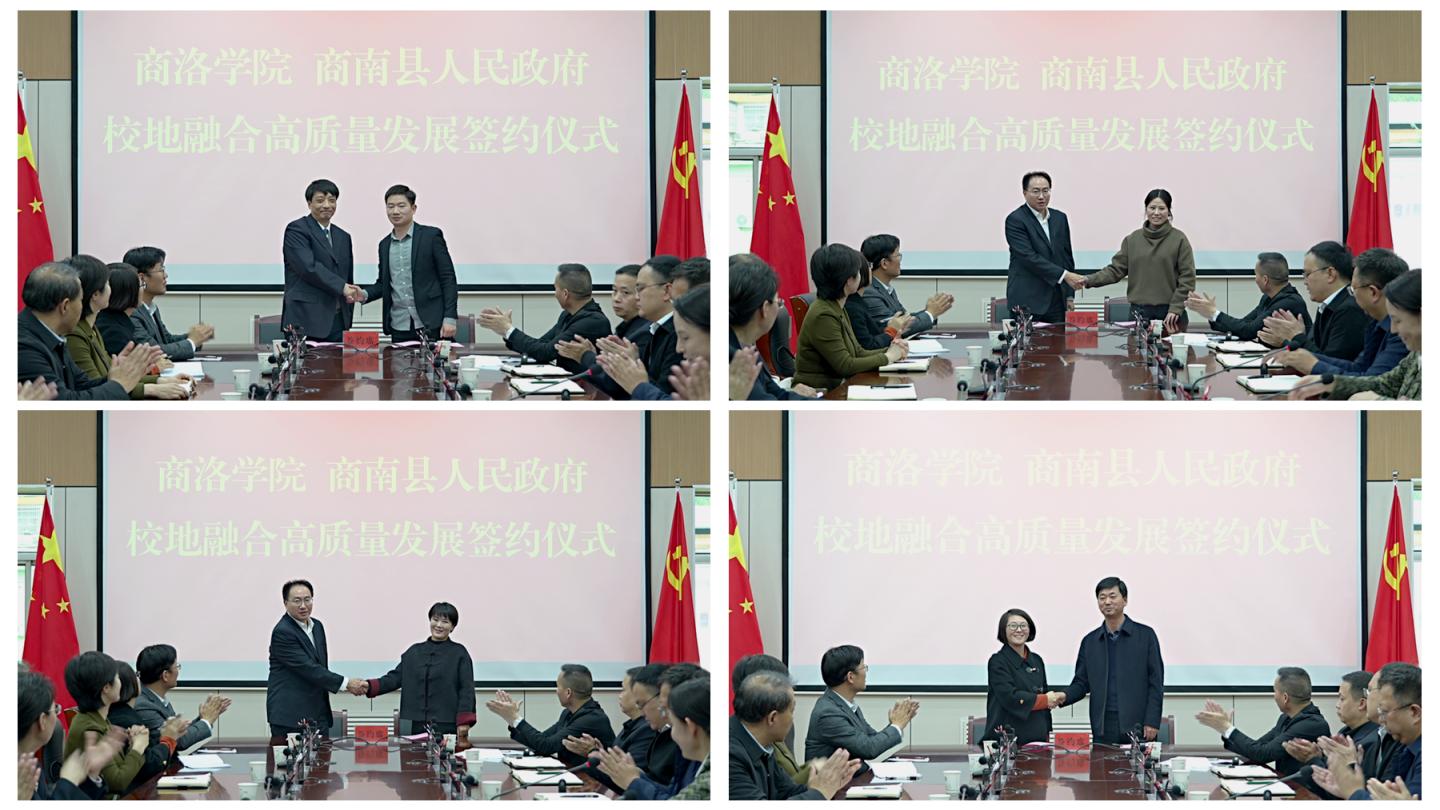 為進(jìn)一步深化校地校企產(chǎn)學(xué)研融合發(fā)展,深化落實(shí)《商洛學(xué)院服務(wù)商洛高質(zhì)量發(fā)展50條措施》,以科技創(chuàng)新服務(wù)地方產(chǎn)業(yè)轉(zhuǎn)型升級(jí),10月30日,商洛學(xué)院·商南縣校地融合高質(zhì)量發(fā)展簽約儀式在商南縣舉行。商洛學(xué)院校長權(quán)雅寧出席簽約儀式并講話,商南縣縣長劉華主持簽約儀式,縣委副書記錢鋒致辭。副校長王新軍,商南縣常務(wù)副縣長王建剛、統(tǒng)戰(zhàn)部部長聶仕成出席簽約儀式。
