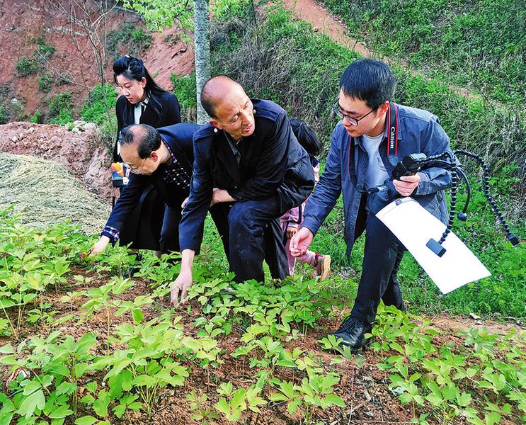 今年4月7日,王洋在商州區(qū)蘆溝村中藥材種植區(qū),調(diào)研中藥材病蟲害發(fā)生情況