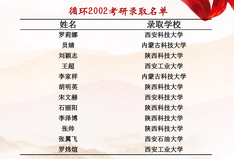 優(yōu)秀的隊(duì)伍從來(lái)不打無(wú)準(zhǔn)備之仗。循環(huán)2002班從大三開始,即在班委會(huì)帶領(lǐng)下與學(xué)院老師、大四畢業(yè)生展開考研聯(lián)動(dòng),充分利用考研臨時(shí)黨支部、先進(jìn)事跡分享會(huì)等渠道,廣泛了解考研備考、初試、復(fù)試、調(diào)劑等環(huán)節(jié),不斷堅(jiān)定信念,夯實(shí)基礎(chǔ),形成了良好的備考氛圍。在2024年碩士研究生招生考試中,循環(huán)2002班全班考研上線14人,上線率高達(dá)43.75%,成功錄取12人,錄取率高達(dá)85.71%,名列全校前茅。班級(jí)里還有像17#531宿舍這樣的優(yōu)良學(xué)風(fēng)宿舍,其中5人考研錄取,2人就業(yè)。在談到備考期間的經(jīng)歷時(shí),該宿舍舍長(zhǎng)李澤博說(shuō):“平均每天學(xué)習(xí)9小時(shí)左右,后期達(dá)到每天11個(gè)小時(shí),白天各自努力,晚上回宿舍時(shí)相互交流學(xué)習(xí)中的問(wèn)題,比如抽查數(shù)學(xué)中的重要概念和基本公式以及英語(yǔ)單詞的背誦等等。每個(gè)人都全力以赴,力爭(zhēng)上岸,每個(gè)人都在為自己的夢(mèng)想而奮力拼搏!”