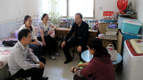 生物學院領(lǐng)導、老師也曾多次去住所看望她們,2017年9月7日,生物學院黨總支書記丁爭尚教授、團總支書記蘇鐵柱老師、輔導員張俊華老師再次來到唐偉麗住處進行了家訪和慰問,為她送去米面油等生活日用品。感受到學校的關(guān)心幫助,原本一直樂觀開朗的唐偉麗,抑制不住內(nèi)心的感激之情,眼淚不停地在眼眶里打轉(zhuǎn)。她說:“感謝學校領(lǐng)導、老師和好心人一直以來對我們這個家庭的關(guān)心和幫扶,我現(xiàn)在最大的心愿是畢業(yè)能找到一個好工作,回報這些關(guān)愛我、幫助我的好心人。我也會帶著媽媽去工作,一直和她在一起,照顧她,一家人在一起就是最大的幸福,我是媽媽永遠的依靠?!?/p>