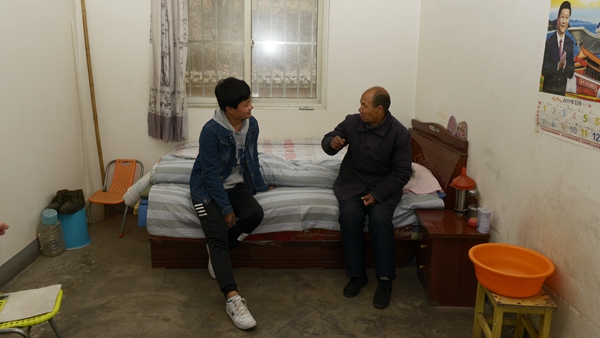 楊斜敬老院坐落在楊斜鎮(zhèn)的一個(gè)村莊里,青年志愿服務(wù)隊(duì)冒雨來(lái)到敬老院。一進(jìn)院子,這些常年生活在這里的孤寡老人們像見(jiàn)到親人般喜出望外,因?yàn)榻?jīng)常來(lái)往,大家很快就和老人們互動(dòng)起來(lái)。同學(xué)們?cè)谠鹤永锍?、跳舞、說(shuō)相聲,為老人表演節(jié)目,給這個(gè)寧?kù)o的院子帶來(lái)了歡聲笑語(yǔ),吸引了周邊村民前來(lái)觀看。管發(fā)亮老人激動(dòng)地告訴我們,自己今年64歲了,無(wú)兒無(wú)女,曾經(jīng)在街頭靠乞討生活,在政府的救助下,1992年來(lái)到敬老院,過(guò)上了有衣穿有飯吃的幸福生活。說(shuō)到高興處,管發(fā)亮吼起了秦腔,一連唱起《社會(huì)主義好》《回娘家》等歌曲。