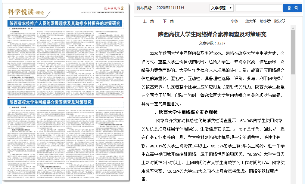 2020年我國大學生互聯(lián)網普及率近100%,網絡在改變大學生生活方式、交往方式,重塑大學生價值觀的同時,也給大學生帶來網絡沉溺、信息繭房、網絡暴力等負面影響。大學生作為社會未來發(fā)展的核心力量,能否適應網絡媒介信息的海量化、匿名性、互動性,具備理性選擇、評價、參與、利用網絡媒介的較高素養(yǎng),決定著整個社會適應和應對互聯(lián)網時代的能力。陜西大學生數量在全國位于前列,以陜西為例,管窺我國大學生網絡媒介素養(yǎng)的現(xiàn)狀與問題,具有一定的典型意義。