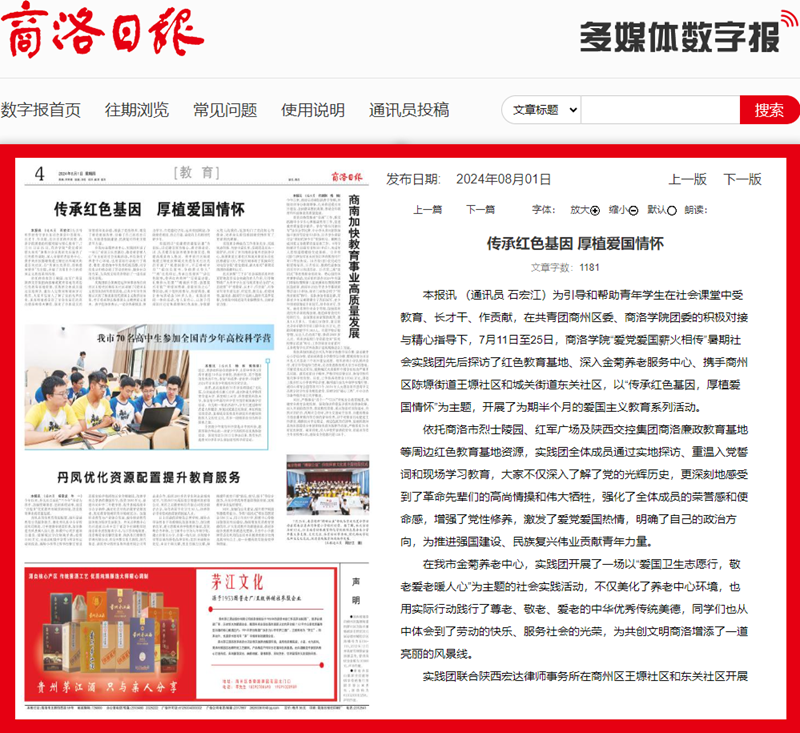 商洛日報(bào):傳承紅色基因 厚植愛國情懷