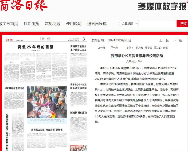 商洛日報(bào):我市舉辦公共就業(yè)服務(wù)進(jìn)校園活動