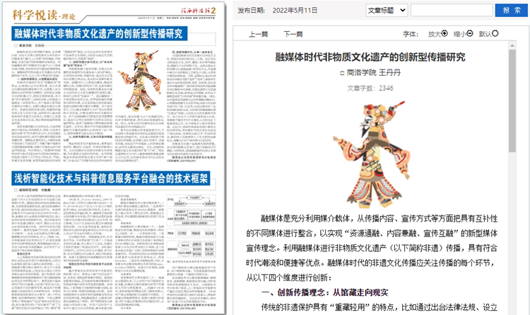 5月份以來,我校教師袁訓鋒、田祎、王丹丹先后在《陜西科技報》理論版刊發(fā)《垃圾分類促進秦嶺生態(tài)保護與提升公民科學素質(zhì)實踐研究》《商洛市科普信息化建設(shè)研究》《融媒體時代非物質(zhì)文化遺產(chǎn)的創(chuàng)新型傳播研究》三篇文章,圍繞秦嶺生態(tài)保護、科普信息化建設(shè)、非物質(zhì)遺產(chǎn)創(chuàng)新傳播等主題,介紹我??蒲蟹?wù)地方實踐成果和經(jīng)驗。文章主要內(nèi)容如下: