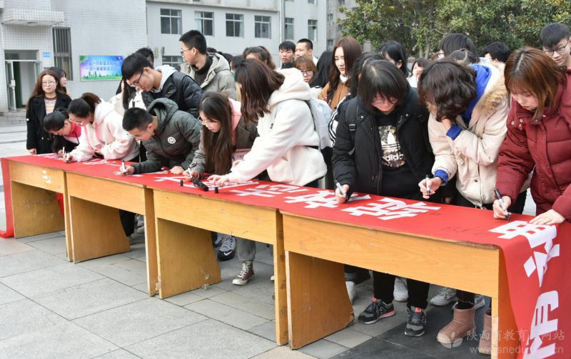 商洛學(xué)院青年志愿者在橫幅上簽字,決心用實(shí)際行動(dòng)踐行諾言