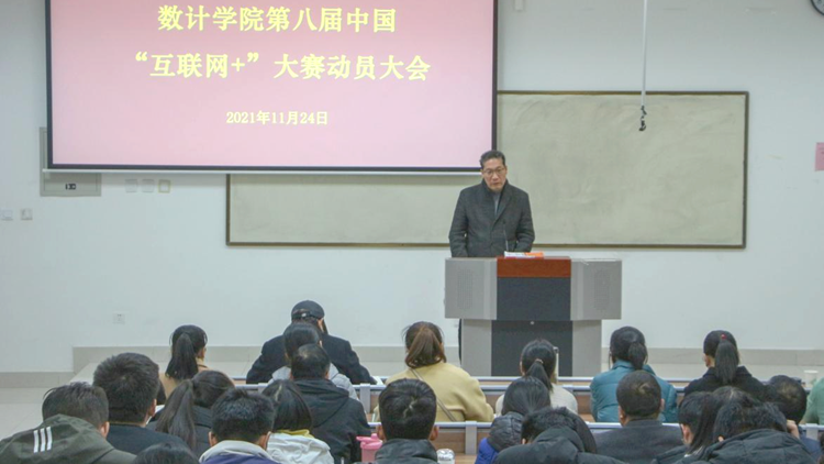 11月24日下午,數(shù)計(jì)學(xué)院舉辦第八屆中國(guó)國(guó)際“互聯(lián)網(wǎng)+”大學(xué)生創(chuàng)新創(chuàng)業(yè)大賽動(dòng)員大會(huì),學(xué)院院長(zhǎng)李超、副院長(zhǎng)王念良、教務(wù)處副處長(zhǎng)高擴(kuò)昌,學(xué)院全體無課教師和學(xué)生代表100余人參加了會(huì)議。