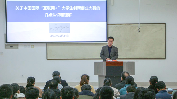 高擴(kuò)昌作了題為《關(guān)于中國(guó)國(guó)際“互聯(lián)網(wǎng)+”大學(xué)生創(chuàng)新創(chuàng)業(yè)大賽的幾點(diǎn)認(rèn)識(shí)和理解》的專題報(bào)告,對(duì)“互聯(lián)網(wǎng)+”大賽政策、學(xué)科前沿及如何備賽進(jìn)行了詳細(xì)的解讀,介紹了我校歷年參賽情況,分享了自己在組織參與“互聯(lián)網(wǎng)+”大賽過程中的心得體會(huì)與寶貴經(jīng)驗(yàn)。