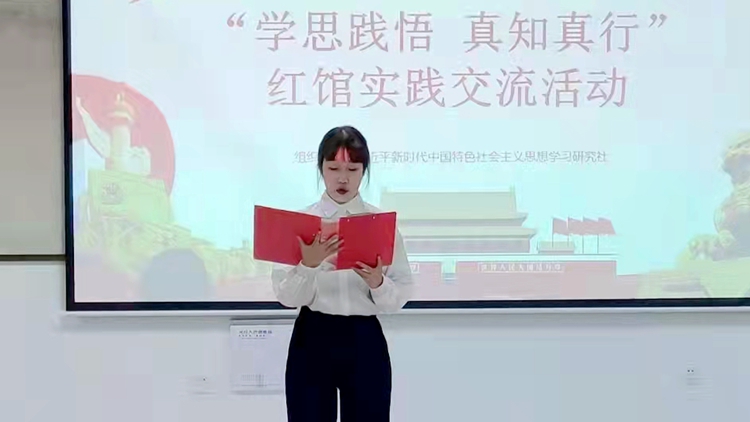 為深入學(xué)習(xí)黨的十九屆六中全會精神,扎實推進黨史學(xué)習(xí)教育,12月9日,馬克思義學(xué)院習(xí)近平新時代中國特色社會主義思想學(xué)習(xí)研究社開展了“學(xué)思踐悟 真知真行”紅館實踐交流活動。學(xué)院黨總支副書記劉麥霞、教師代表參加活動并作交流指導(dǎo)。學(xué)院習(xí)研社成員及2021級部分學(xué)生參加活動。