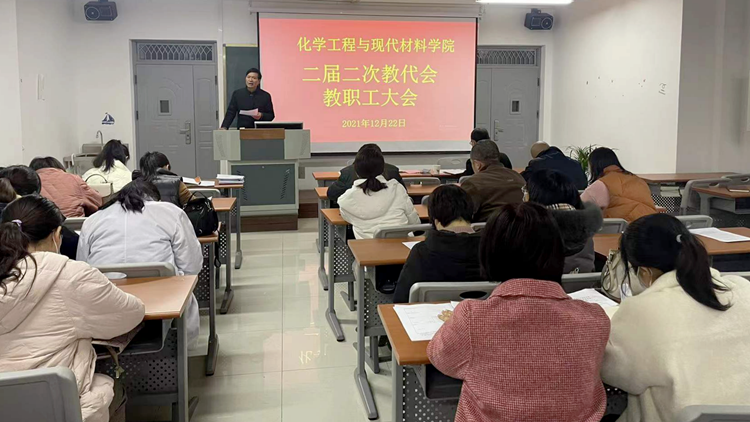 教代會(huì)在雄壯的國(guó)歌聲中開幕。周春生在會(huì)上對(duì)《化學(xué)工程與現(xiàn)代材料學(xué)院“十四五”事業(yè)發(fā)展規(guī)劃》《化學(xué)工程與現(xiàn)代材料學(xué)院2021年工作總結(jié)和2022年工作計(jì)劃》《化學(xué)工程與現(xiàn)代材料學(xué)院崗位績(jī)效工資分配辦法》向與會(huì)人員作了說明。