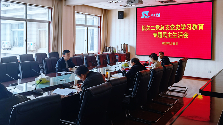 根據(jù)校黨委關(guān)于開(kāi)好2021年度黨史學(xué)習(xí)教育專(zhuān)題民主生活會(huì)的安排部署,3月25日下午,機(jī)關(guān)二黨總支召開(kāi)黨史學(xué)習(xí)教育專(zhuān)題民主生活會(huì)。校黨委副書(shū)記彭虎軍到會(huì)指導(dǎo)。機(jī)關(guān)二黨總支委員參加會(huì)議。會(huì)議由機(jī)關(guān)二黨總支書(shū)記石啟英主持。
