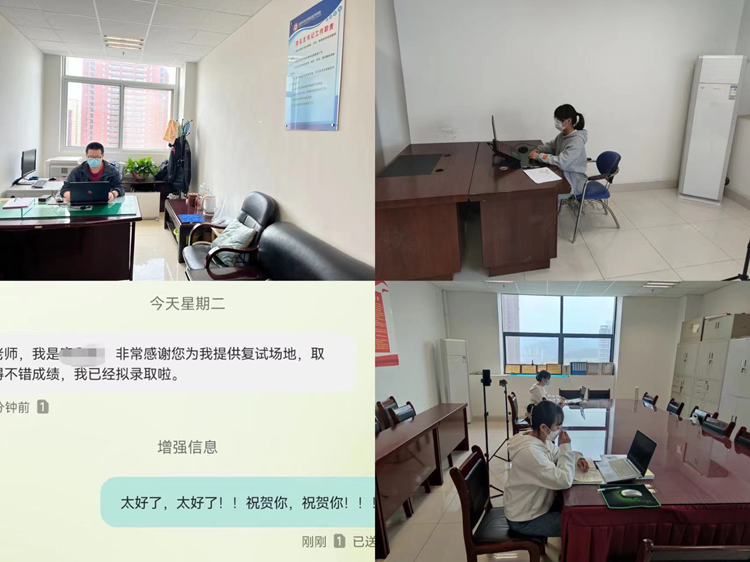 領(lǐng)導(dǎo)重視,精心服務(wù)。疫情防控背景下,學(xué)院考慮到線上參加考研復(fù)試的學(xué)生居多,黨總支書記親自部署安排,將學(xué)院會議室、黨員活動室、部分教研室和辦公室作為學(xué)生考研專用復(fù)試場地,升級復(fù)試場所網(wǎng)絡(luò),幫助提供筆記本、耳機等線上復(fù)試設(shè)備,協(xié)助學(xué)生調(diào)試網(wǎng)絡(luò)和設(shè)備,傾力為學(xué)生排憂解難,全方位為學(xué)生考研復(fù)試保駕護航。