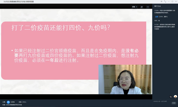 劉燕妮結合多年臨床經(jīng)驗,用大量鮮活的實例,從HPV疫苗接種解析、青春期保健、解密女性生理期等方面為現(xiàn)場師生講述了女性生理健康的重要性。她倡導,學子們要養(yǎng)成良好的生活習慣、健康的飲食衛(wèi)生習慣,要做到科學防護,遠離疾病困擾嗎,要時刻保持著科學、有界限的性心理,了解性危機事件相關防范知識。