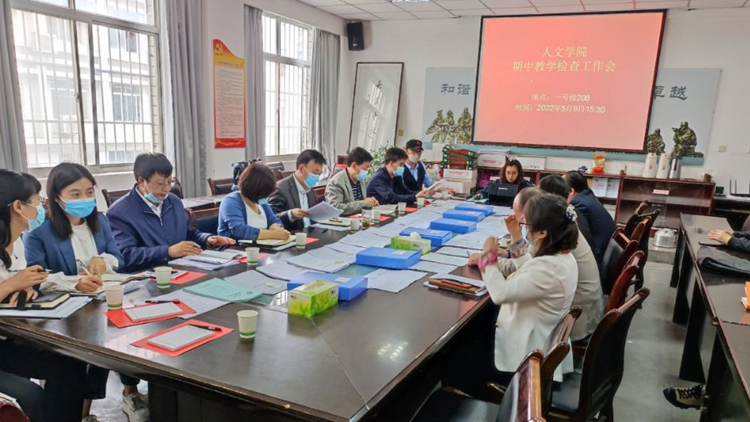 5月9日下午,黨委副書記彭虎軍一行9人深入人文學院進行期中教學專項檢查。人文學院黨政領導班子成員、督導組成員、各系負責人以及部分教師代表參加專項檢查座談會。院長張文諾作了專題匯報并陪同檢查了相關教學資料。